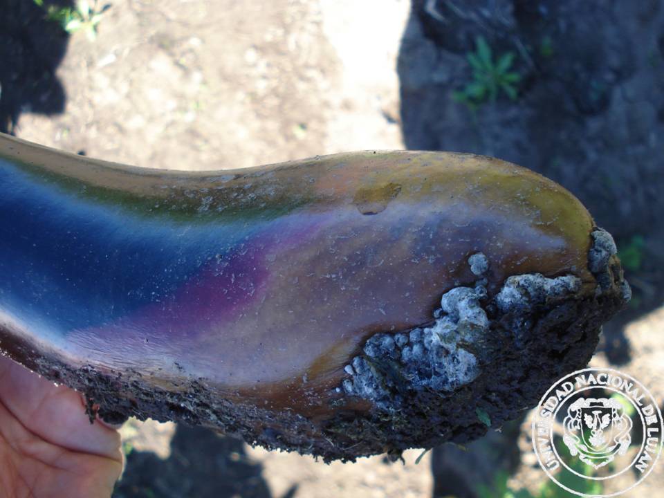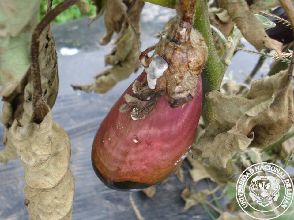 La esclerotiniosis se presenta con baja incidencia en berenjena en la provincia de Buenos Aires, inclusive en la zona sur de la misma. En invernáculos con carga de inóculo puede ser un problema.