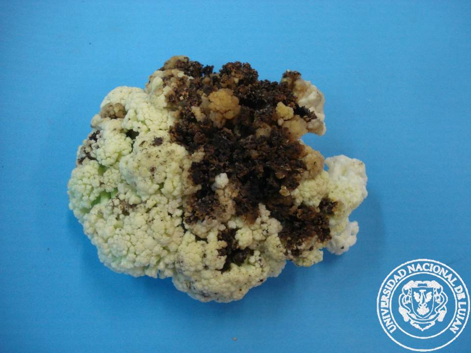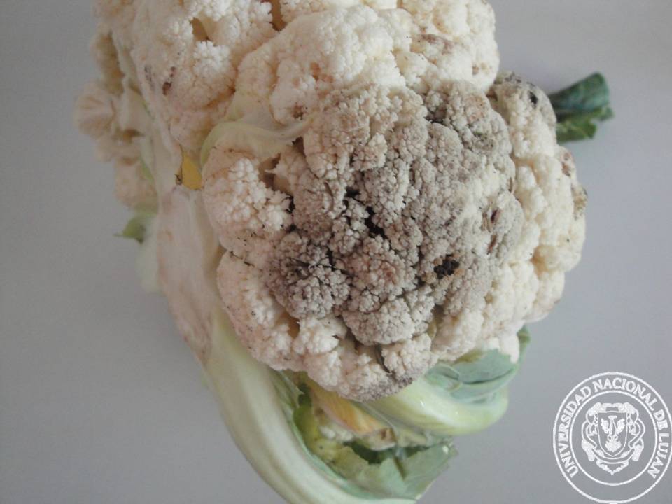 En las plantas adultas de coliflor la alternariosis comienza en las hojas viejas, produciendo lesiones muy semejantes a las presentes en repollo y brócoli (Foto) y en la zona norte de la provincia de Buenos Aires también afecta las pellas con mayor frecuencia que en el caso del brócoli.